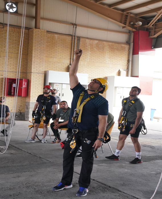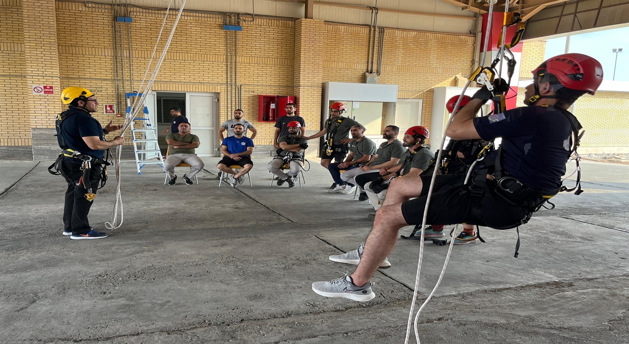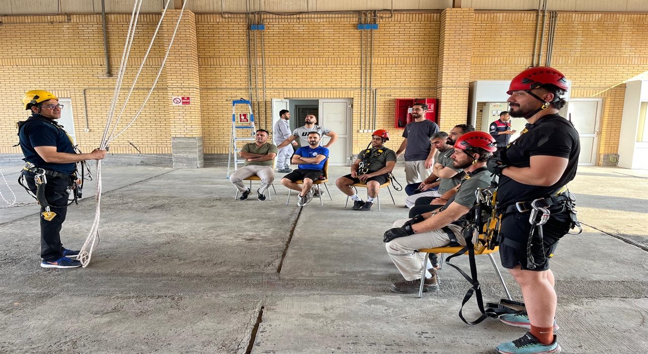 در بخش عملی، کارکنان با تجهیزات ویژه مانند هارنس، لایفلاین، شوکگیر و کارابین کار کردند و تمرینهای صعود، فرود، جابهجایی امن و مهار سقوط را در قالب سناریوهای طراحیشده تجربه کردند.